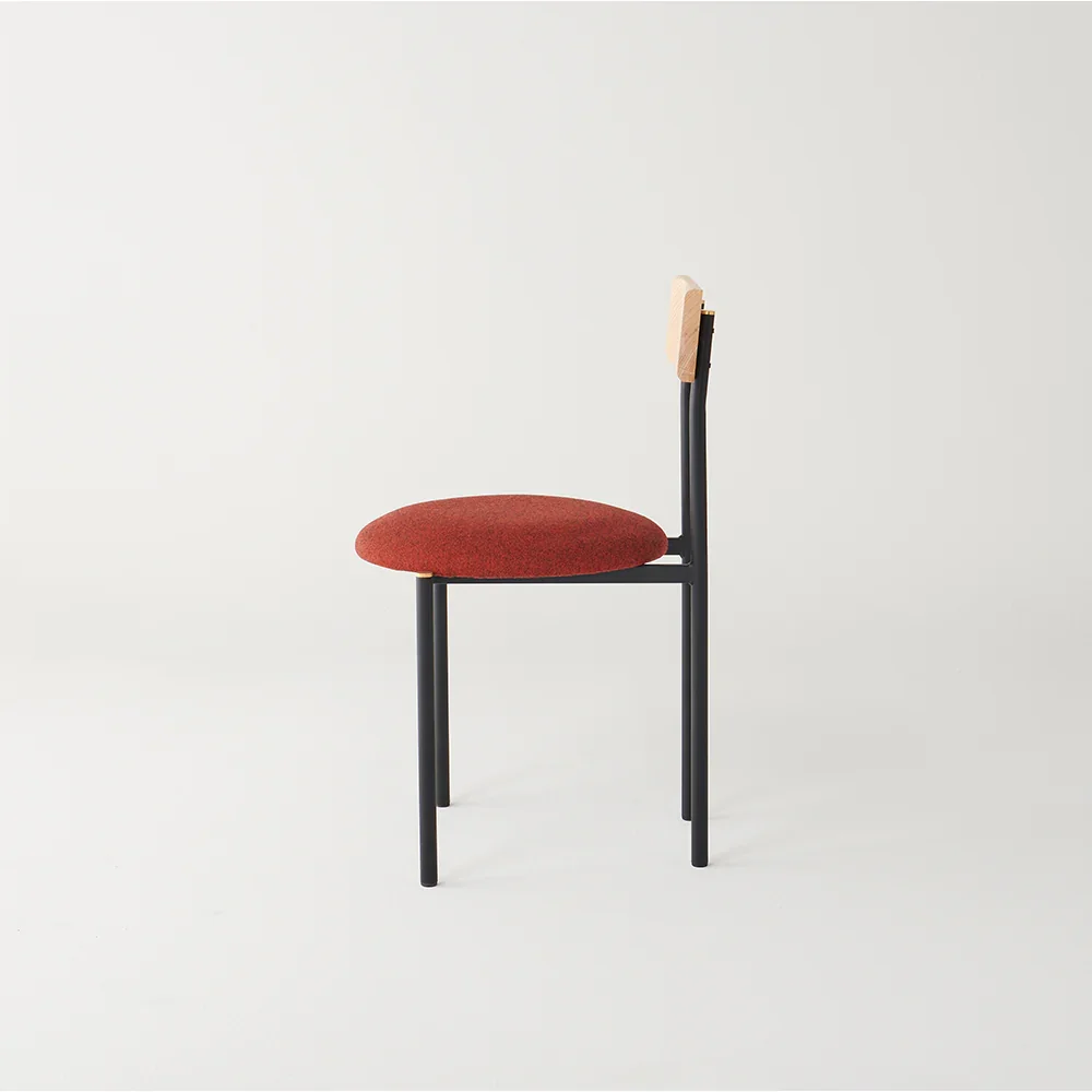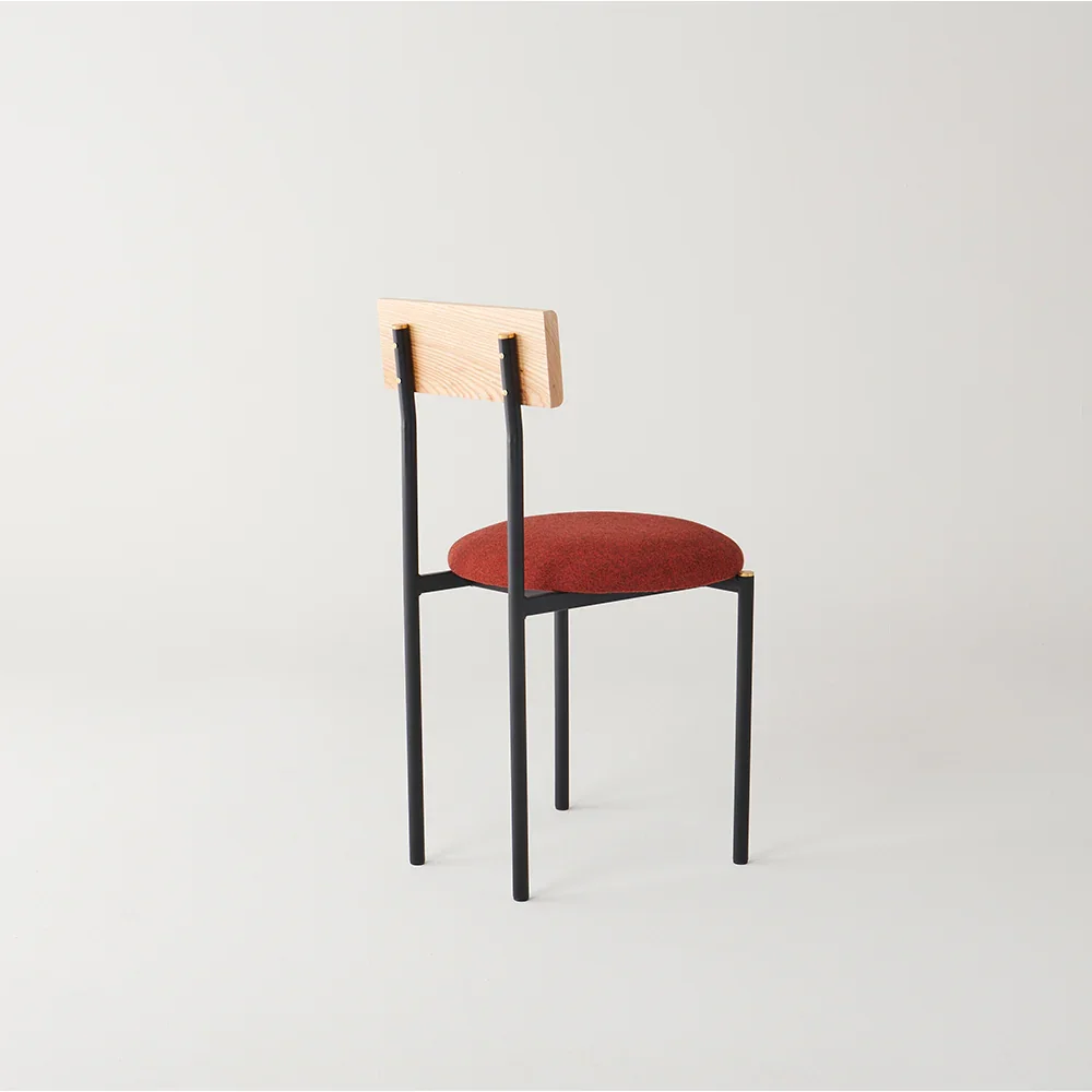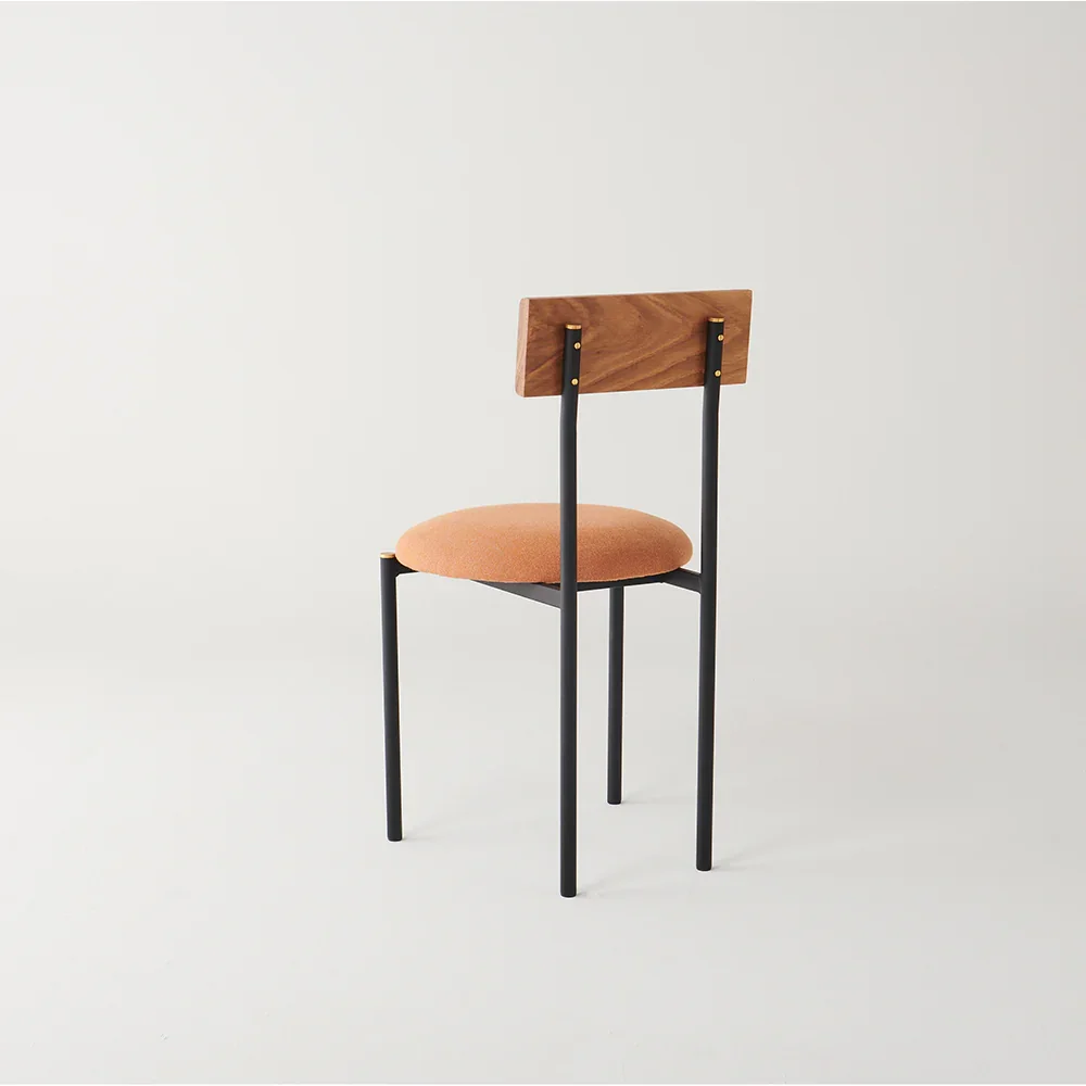 La silla Colima, de tubo de acero premium para interiores, combina tapicería en el asiento y respaldo de madera. Este diseño de confort superior prolonga la estancia del comensal, optimizando el consumo promedio.